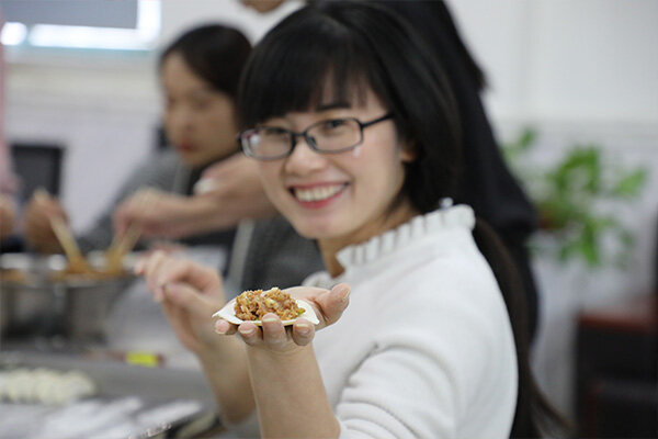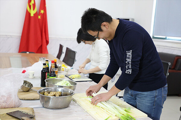 冬至宴熱鬧有序的進行著,大家分工明確,以飽滿的熱情投入這場活動中,先開始行動的就是我們的采買小隊,精心挑選食材,交于我們的帥哥-調餡擔當。