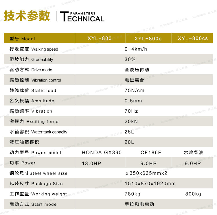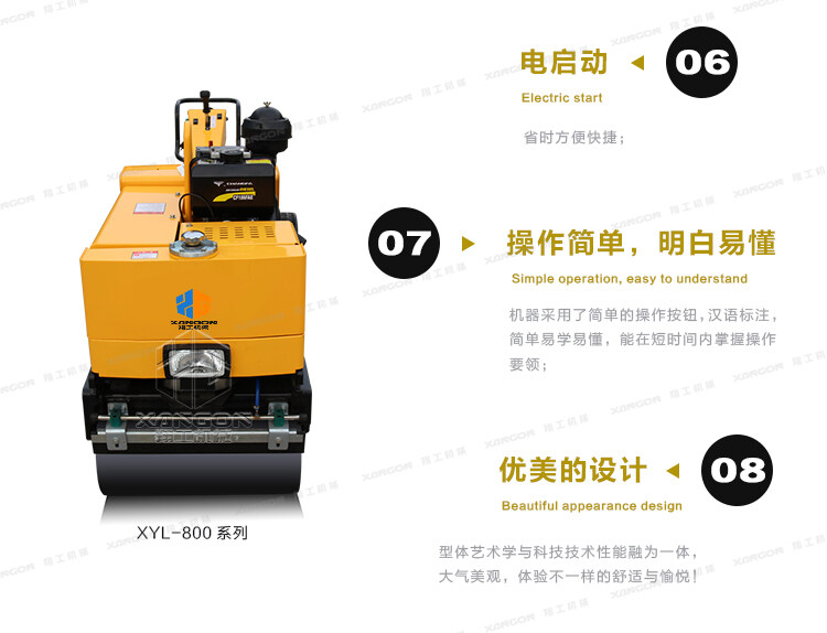 XYL-800C手扶全液壓壓路機(jī)(柴油)主要用于溝渠基礎(chǔ),道路,體育場(chǎng)地的壓實(shí)整平,也可用于壓實(shí)瀝青表面的作業(yè)。