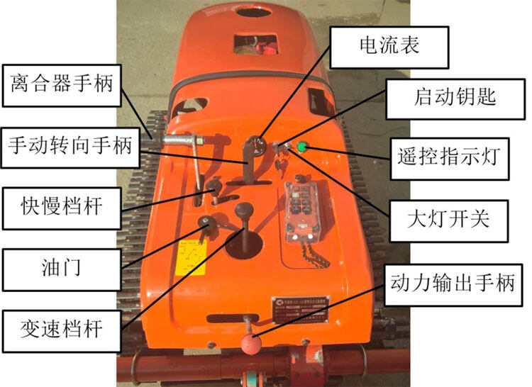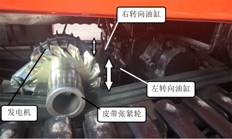 注意:左、右轉(zhuǎn)向油缸頂桿單獨推出,控制左、右轉(zhuǎn)向;同時推出為臨時停車;直線行走時油缸收回;調(diào)整發(fā)電機(jī)拉桿漲緊皮帶。