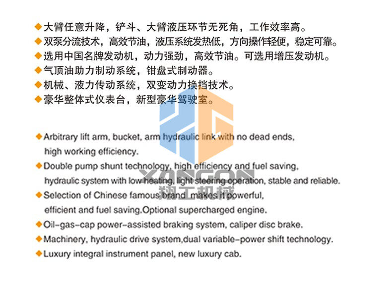 主要用于鏟裝土壤、砂石、石灰、煤炭等散狀物料,也可對礦石、硬土等作輕度鏟挖作業(yè)。換裝不同的輔助工作裝置還可進行推土、起重和其他物料如木材的裝卸作業(yè)。在道路、特別是在高等級公路施工中,裝載機用于路基工程的填挖、瀝青混合料和水泥混凝土料場的集料與裝料等作業(yè)。